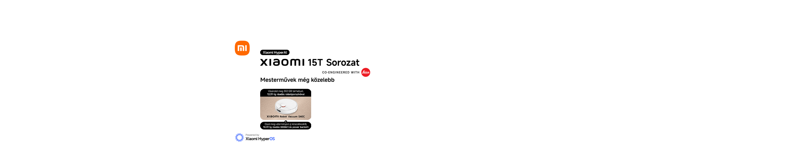 Vásárolj Xiaomi 15T vagy 15T Pro készüléket 512 GB-os tárhellyel, ráadás Xiaomi Robot Vacuum S40C porszívóval.