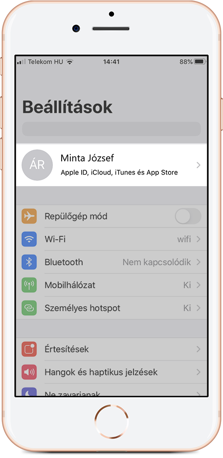Menj a Beállítások menüpontba és kattints a nevedre;