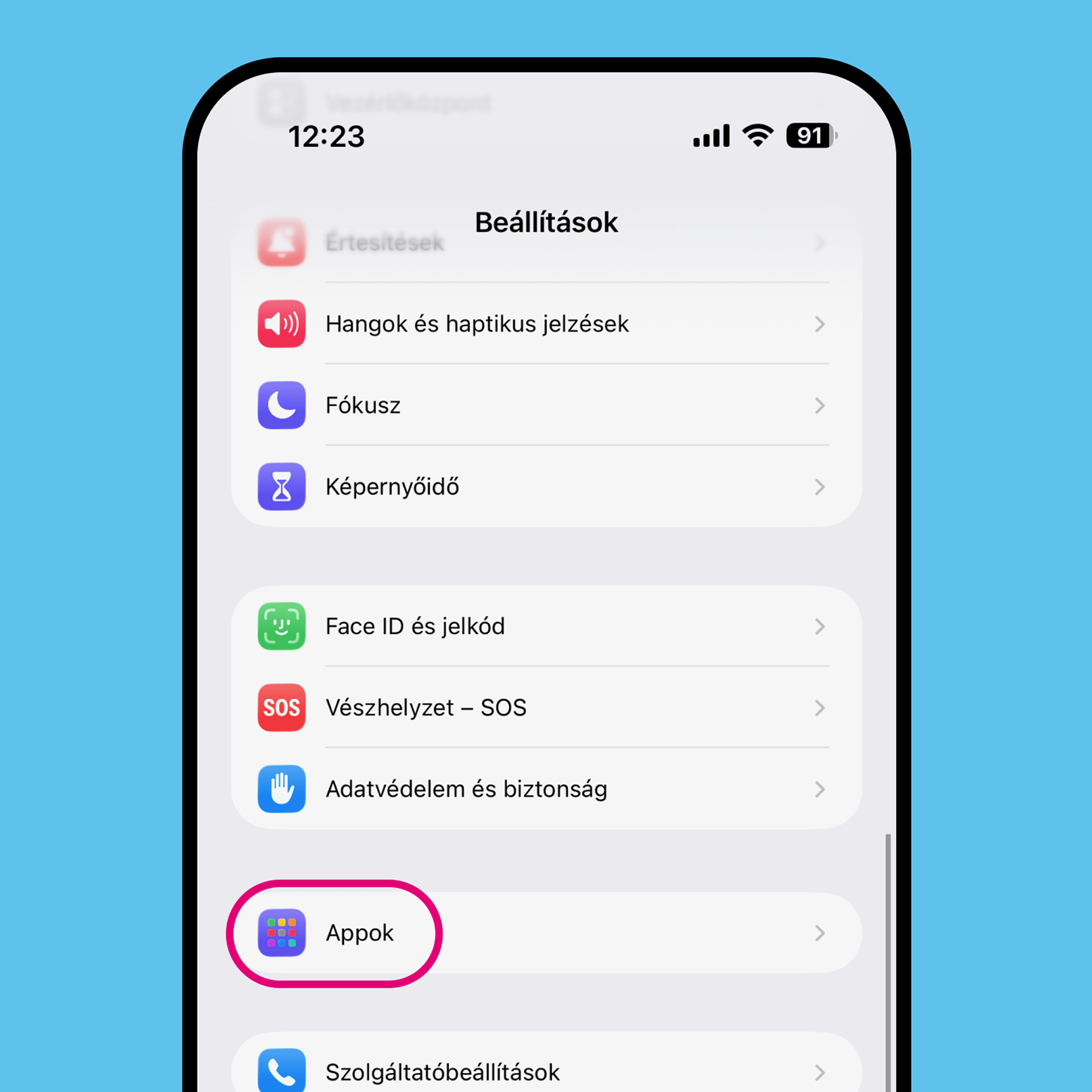 A Beállításokon belül, az Appok között lépj be az Üzenetek beállításaihoz.