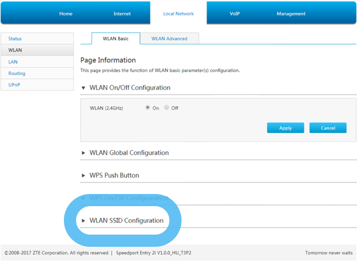 Válaszd ki a „WLAN SSID Configuration” menüpontot.