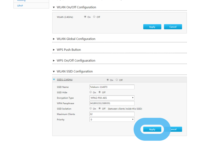 A Wi-Fi kapcsolathoz egyedi jelszót is létrehozhatsz a konfigurációs felületen (192.168.1.254).