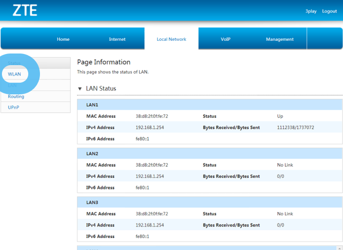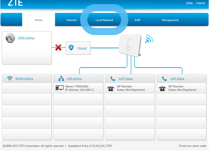 Belépés után válaszd ki a felső menüsorból a „Local Network” menüpontot.