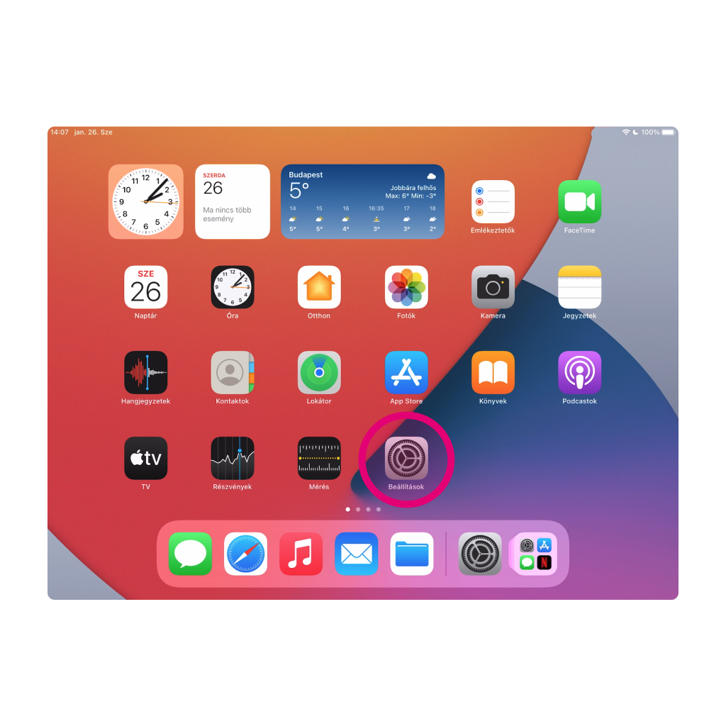 Ehhez első lépésként lépj be a készüléken a “Beállítások” menübe.