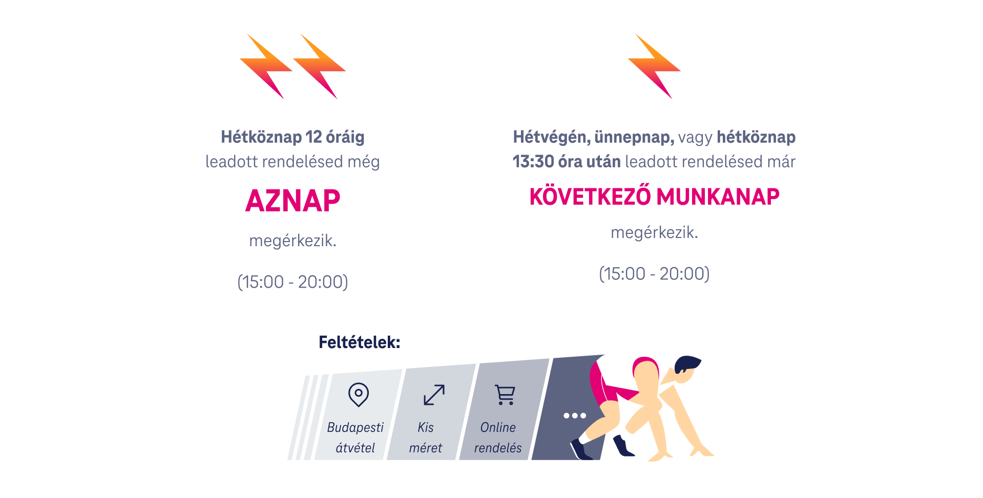 • 20 óráig elérhető vagy a rendelés napján a budapesti átvételi címen