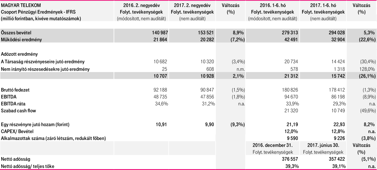 „A Csoport bevételek jelentős mértékben, 8,9%-kal tovább nőttek 2017. második negyedévben az előző év azonos időszakához képest. Az EBITDA azonban 1,8%-kal csökkent, mivel a sikeresen végrehajtott költségcsökkentési intézkedések nem tudták teljes mértékben ellensúlyozni a bruttó fedezet csökkenését. Mindazonáltal, számos említésre méltó eredményt tudtunk felmutatni az időszak során, melyekre szeretném felhívni a figyelmet.